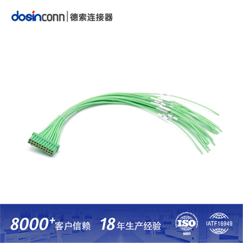 JL24系列电连接器20芯孔式插头压接带线10CM直式300V绿色连接器
