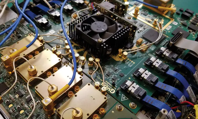 Beamcraft系列高清有源Antenna Systems使用Dosintec高速板对板连接器将信号从主数字板路由到天线模块。照片由Blue Danube友情提供。