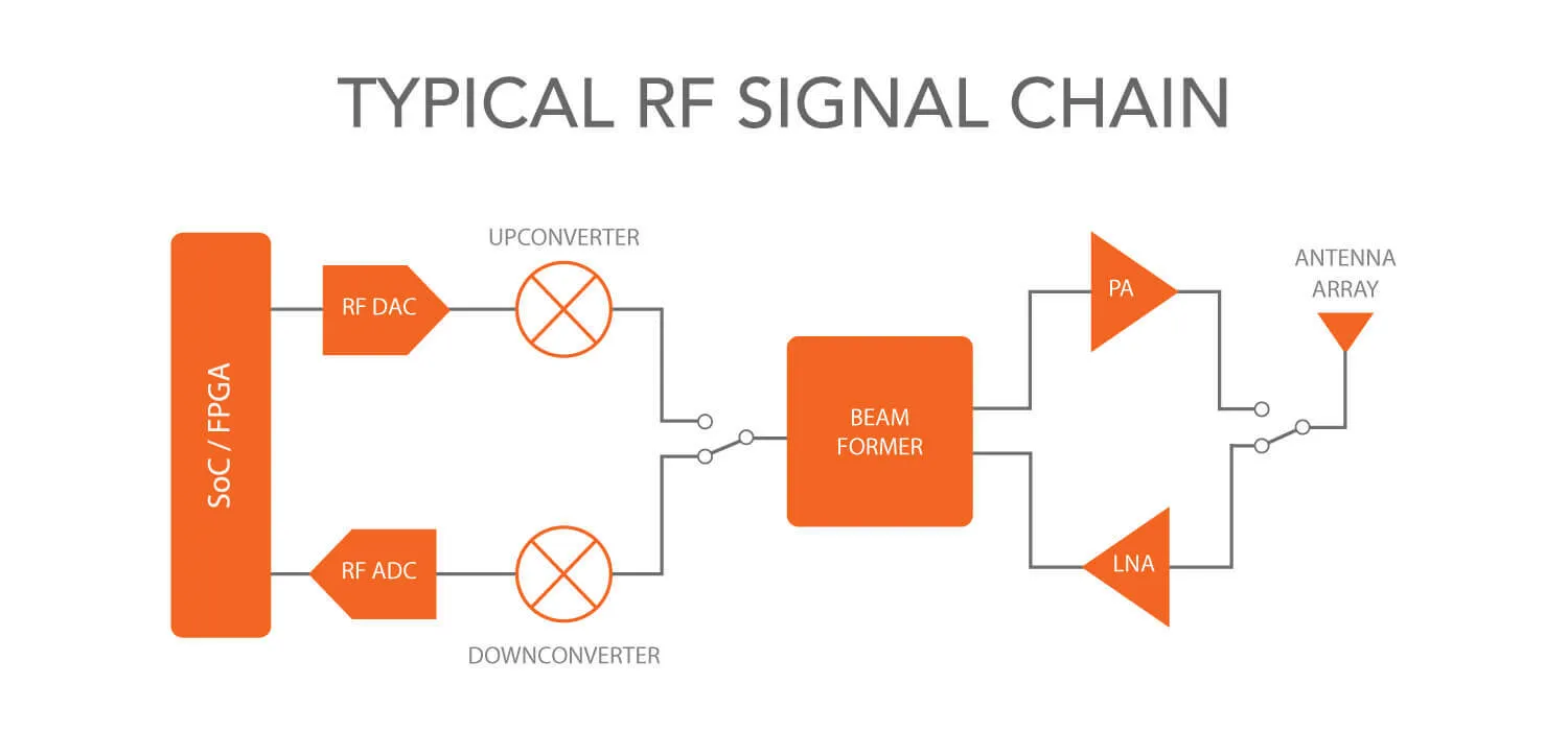 任何支持5G的设备的核心仍然是mmWave硅晶片IC从位到天线的发送和接收数据。5G系统开发通常链接多个射频信号链和模拟终端应用的数字IC开发板。